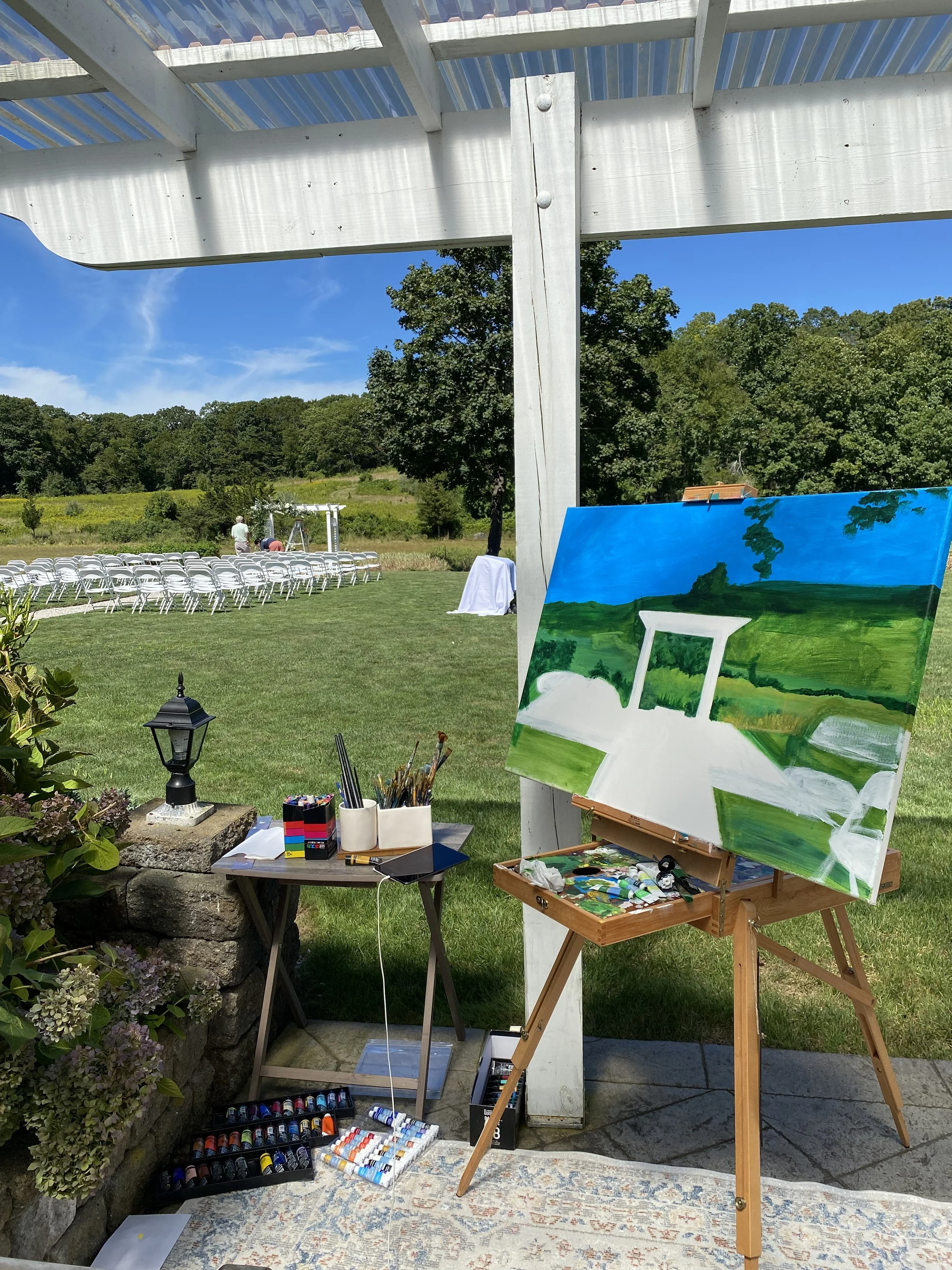 - 1-2 Hours pre-ceremony to sketch-in & color block the venue background